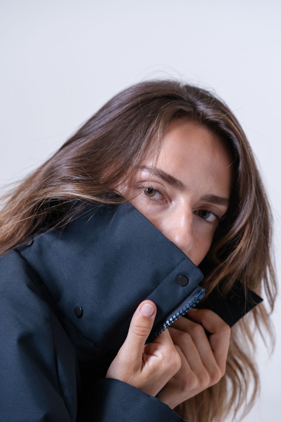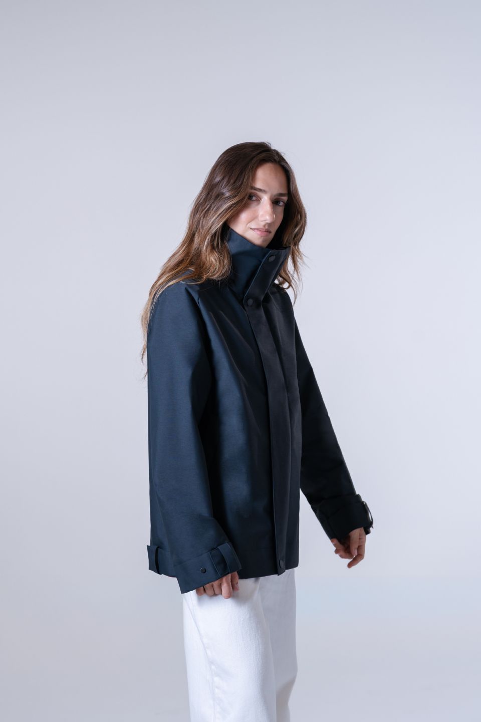 Fermetures à glissière et boutons-pression fabriqués en Italie par Riri, maison suisse spécialiste des accessoires haut de gamme, garantissant durabilité et résistance aux embruns et à l’eau salée.